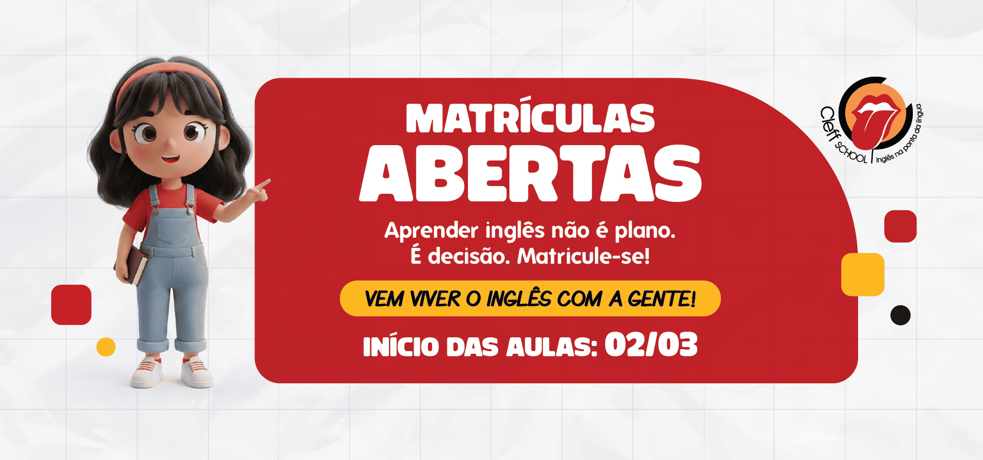 A Cleff School é uma rede de escolas de ensino da língua inglesa que acredita em um aprendizado vivo, colaborativo e transformador. Nosso propósito é oferecer uma experiência de ensino de inglês de alta qualidade, em que o aluno desenvolve não apenas a fluência, mas também autonomia, criatividade e confiança.